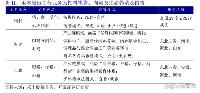禾丰是国内知名的大型农牧企业,主要业务包括饲料及饲料原料贸易业务、肉 禽业务、生猪业务,同时涉猎动物药品、养殖设备、宠物医疗等领域。
